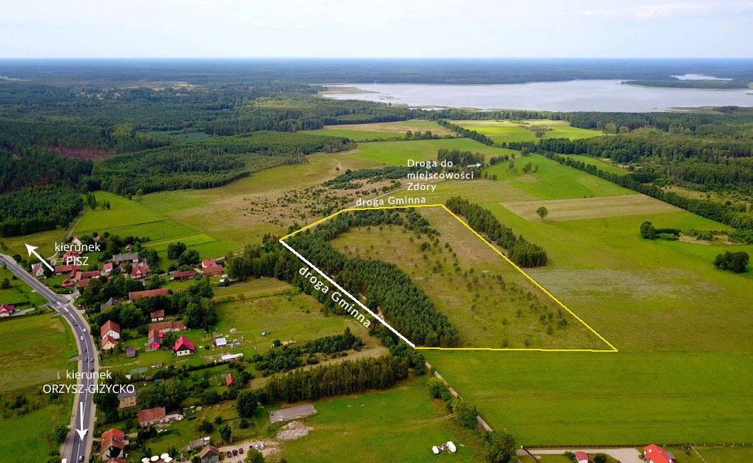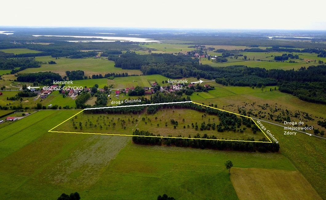 Nieruchomość usytuowana jest w Mazurskim Parku Krajobrazowym, przy drodze w Kierunku Orzysz-Giżycko, Orzysz-Ełk przy trasie Orzysz-Pisz. Przez teren posesji przebiegała będzie Mazurska Pętla Rowerowa.