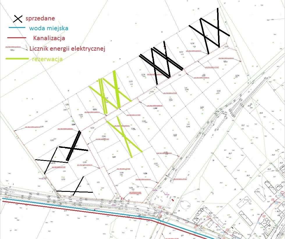 Wszystkie media przy działkach (woda, kanalizacja, prąd).